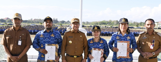 Bupati Yos Lede menyampaikan ucapan selamat kepada P3K yang telah menerima SK. Ia pesankan tunjukkan kinerja yang baik, berdedikasi, menjadi kebanggaan, dan loyal kepada masyarakat dan daerah.