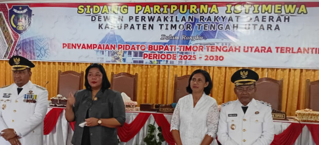 TTU, Sonaf- News.com. Dewan Perwakilan Rakyat Daerah Kabupaten Timor Tengah Utara, Senin (3/3/2025) mengadakan Paripurna Istimewah untuk Penyampaian Pidato Perdana Bupati TTU periode 2025-2030. Bupati TTU periode 2025-2030, Yoseph Falentinus D Kebo menyampaikan sejumlah pesan kepada rakyat di gedung biru itu. Dalam Pidato Perdananya ia menyampaikan terima kasih atas Kepercayaan yang diberikan dan kemenangan yang diraih pada pilkada kali lalu merupakan kemenangan rakyat oleh karena itu mari kita bergangdeng tangan bersama bangun Kabupaten Timor Tengah Utara dengan memanfaatkan potensi yang ada ke arah yang lebih baik.