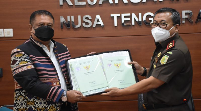 Eksekusi Putusan MA, Kajati NTT Serahkan 32 Sertifikat Tanah Depan Hotel Sasando ke Pemkot Kupang
