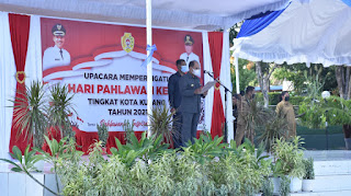 Wali Kota Kupang selaku inspektur upacara saat membacakan sambutan Menteri Sosial RI, Tri Rismaharini, menyampaikan ajakan untuk menjadikan momentum peringatan Hari Pahlawan Tahun 2021 untuk memaknai nilai-nilai kepahlawanan sebagai inspirasi untuk terus berinovasi dan meningkatkan daya kreasi.